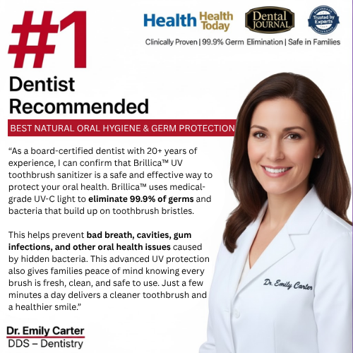 Don’t wait for hidden bacteria to cause cavities infections or embarrassing bad breath. Brillica UV C sanitation protects your family’s health before problems ever start.